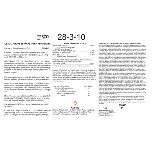 LESCO Rotary Spreader Setting 14
