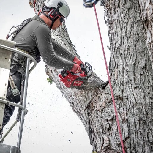 M18 Fuel 14 in. Top Handle Chainsaw, M18 Red lithium High Output XC8.0 Battery, M18 Red Lithium High Output HD12.0 Battery Pack, M18 Dual Bay Simultaneous Rapid Charger, Scabbard & Scrench